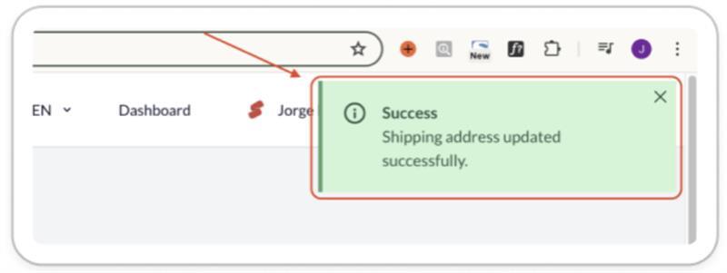 Log into your Showpass account and select orders from the drop down. On the order details page, click on the 'Update shipping address' button. After updating the shipping information, click 'Update' to confirm the changes. A success message should be displayed at the top of the screen (right side). Click here for more instructions.